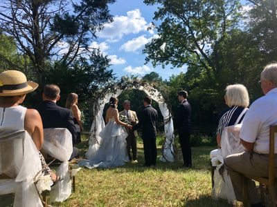 For couples the gorgeous and varied landscapes of Eagles Gate Farm make it particularly easy to have a spectacular outdoor wedding ceremony. Whether you choose to wed near a lush forest, a 2 acre lake, or the beautiful columns of our 1907 home, you will love the elegance nature lends to the occasion. Since nature will do much of the heavy lifting, you can save time and money decorating the event space. More importantly, you will have plenty of space for all of your guests—allowing you to go big or small.